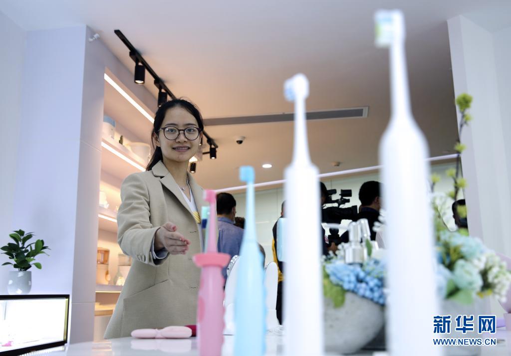 4月19日,在广东新宝电器股份有限公司,工作人员在介绍电动牙刷。