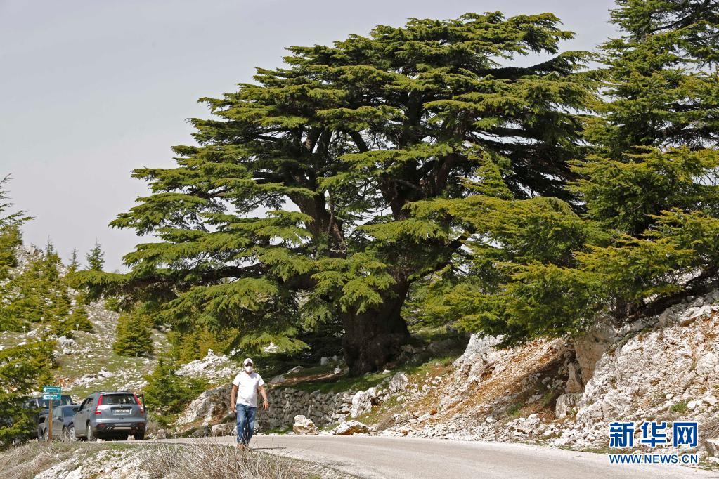 4月18日,游人在黎巴嫩巴鲁克雪松保护区内行走。