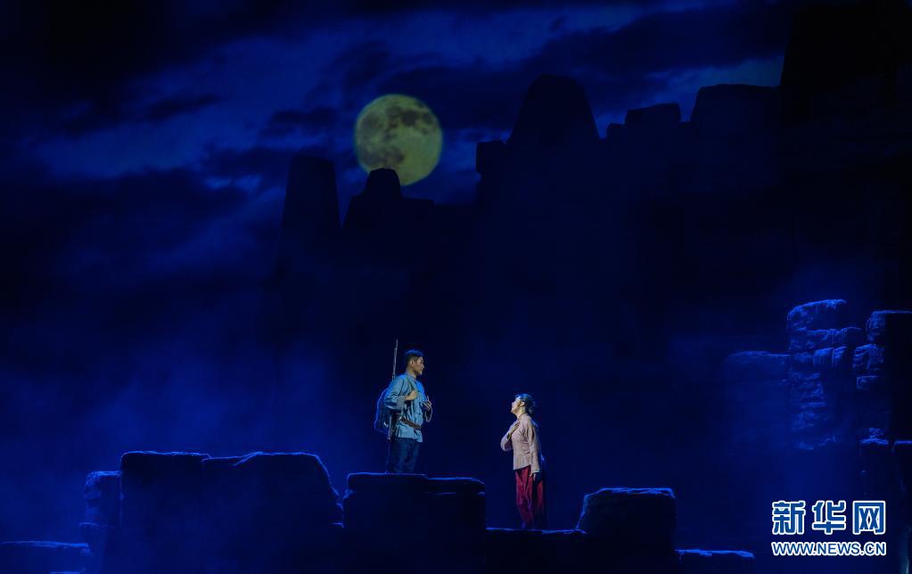 当日,由中共中央宣传部、文化和旅游部、中国文学艺术界联合会共同举办的庆祝中国共产党成立100周年优秀舞台艺术作品展演拉开帷幕,民族歌剧《沂蒙山》当晚在国家大剧院上演。新华社记者 翟健岚 摄