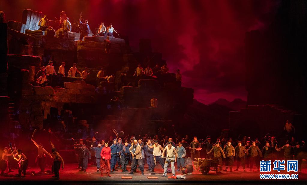 当日,由中共中央宣传部、文化和旅游部、中国文学艺术界联合会共同举办的庆祝中国共产党成立100周年优秀舞台艺术作品展演拉开帷幕,民族歌剧《沂蒙山》当晚在国家大剧院上演。新华社记者 翟健岚 摄