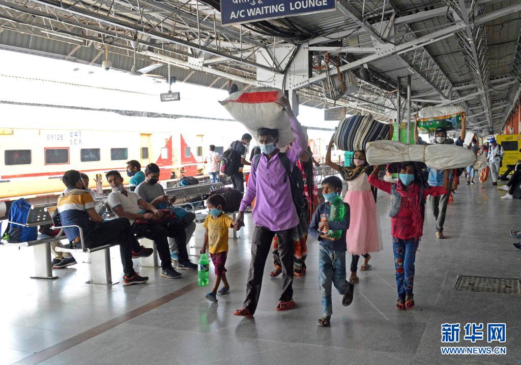 4月20日,人们在印度班加罗尔搭乘火车。