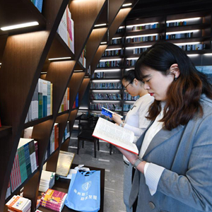 4月21日,职工在湖州市吴兴区新时代职工普法基地的职工书屋内阅读。