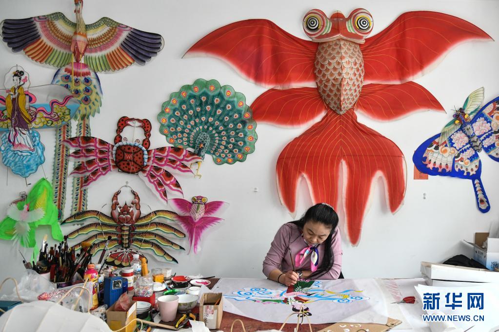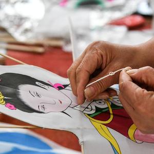 在近40年的创作实践中,她传承“扎、糊、绘、放”的传统制作技艺,大胆创新,将杨家埠年画技艺移植到风筝制作中,逐步形成了线条流畅、色彩鲜艳的绘画特点,扎制的风筝骨架周正,飞行性能优良。