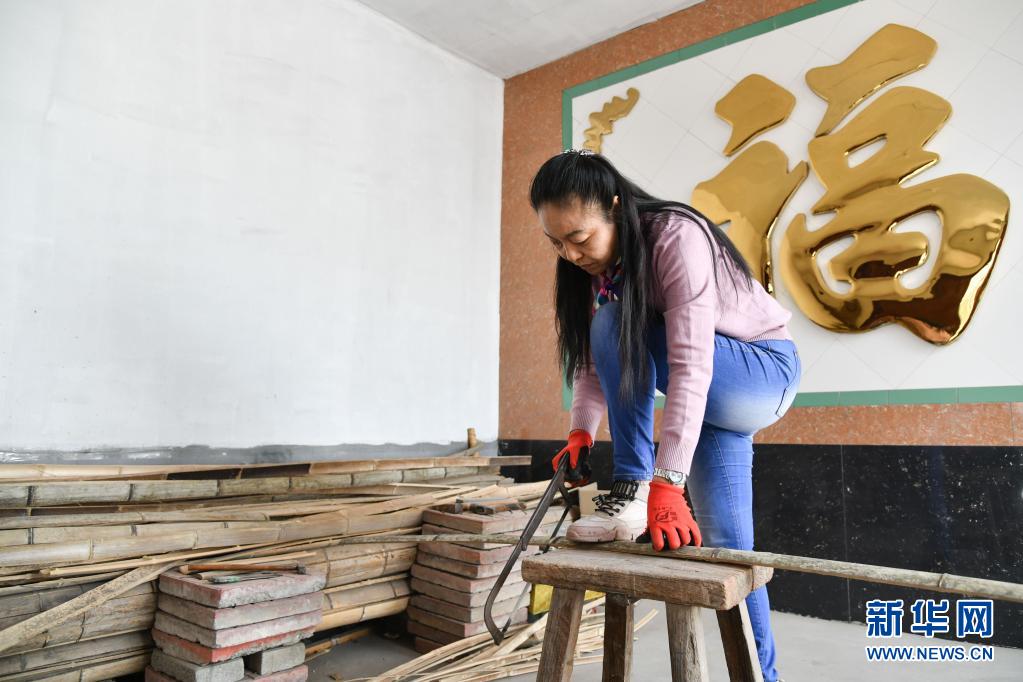 在潍坊市杨家埠村,杨红卫在加工制作风筝骨架的竹条(4月16日摄)。新华社记者 朱峥 摄