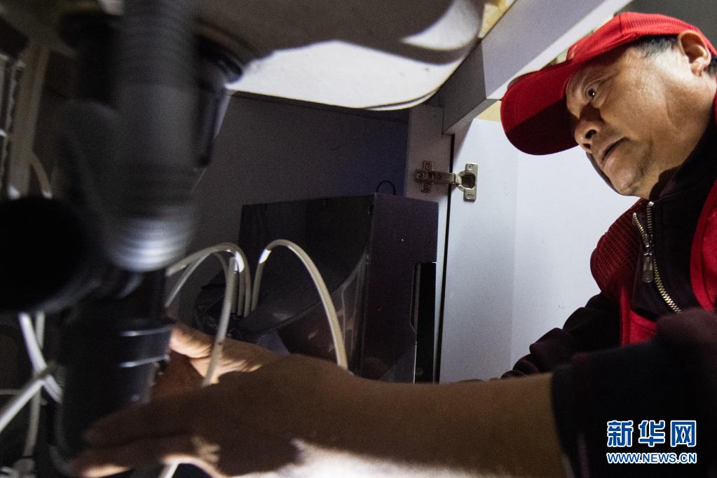 4月21日,在望城名都社区,志愿者张大三上门为邻居免费修理厨房排水管。