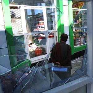 这是4月21日在阿富汗首都喀布尔拍摄的爆炸现场附近受损的加油站。