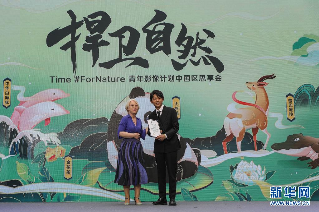 4月15日,联合国开发计划署驻华代表白雅婷为四川省甘孜藏族自治州理塘县旅游大使丁真颁发“捍卫自然倡导人”证书。