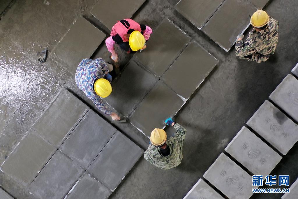 4月20日,中铁四局工作人员在制作装配式桥面系部件(无人机照片)。