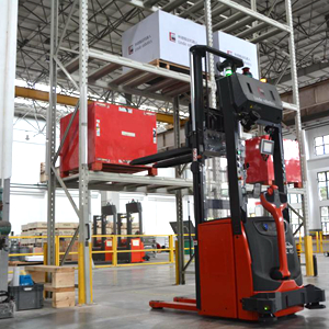 4月20日,在厦门本土企业金牌厨柜的压贴车间内,上板机器人在工作。新华社记者颜之宏摄
