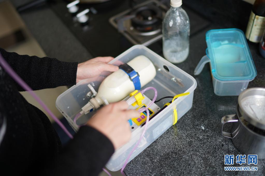 4月20日,吴新元在装配营养液。 新华社记者 周密 摄
