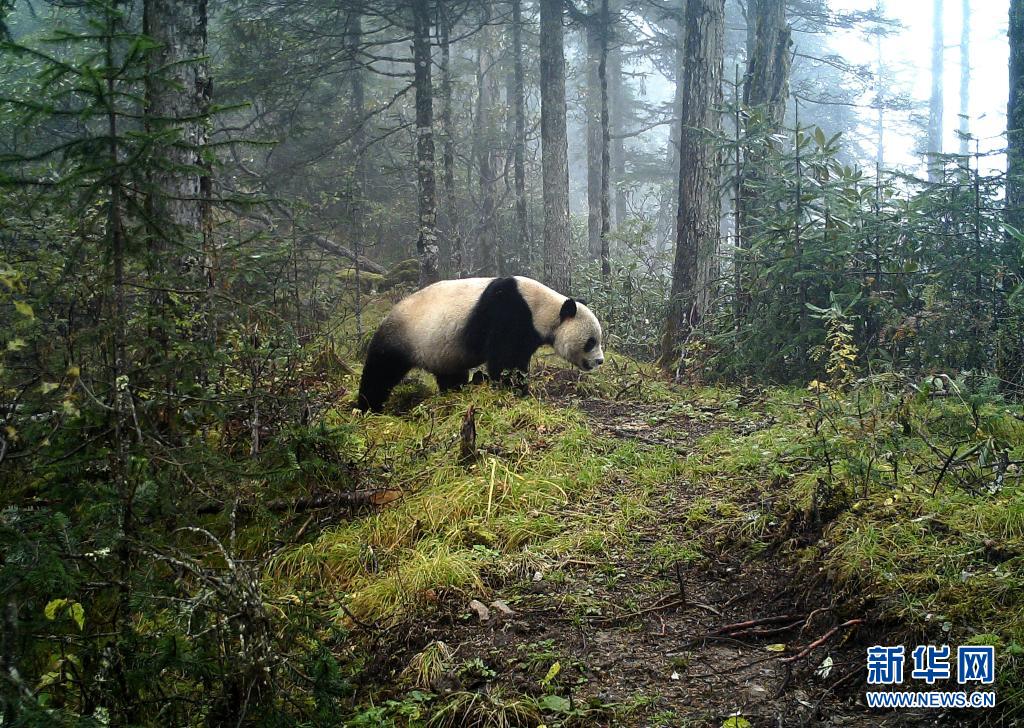 这是红外相机拍摄到的野生大熊猫活动画面(资料图片)。新华社发(甘肃白水江国家级自然保护区管理局供图)