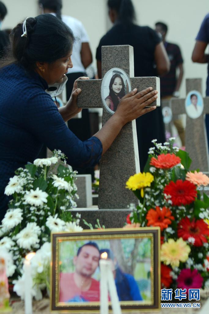 4月21日,在斯里兰卡尼甘布的一处墓地,一名女子悼念连环恐怖袭击事件中的死难者。