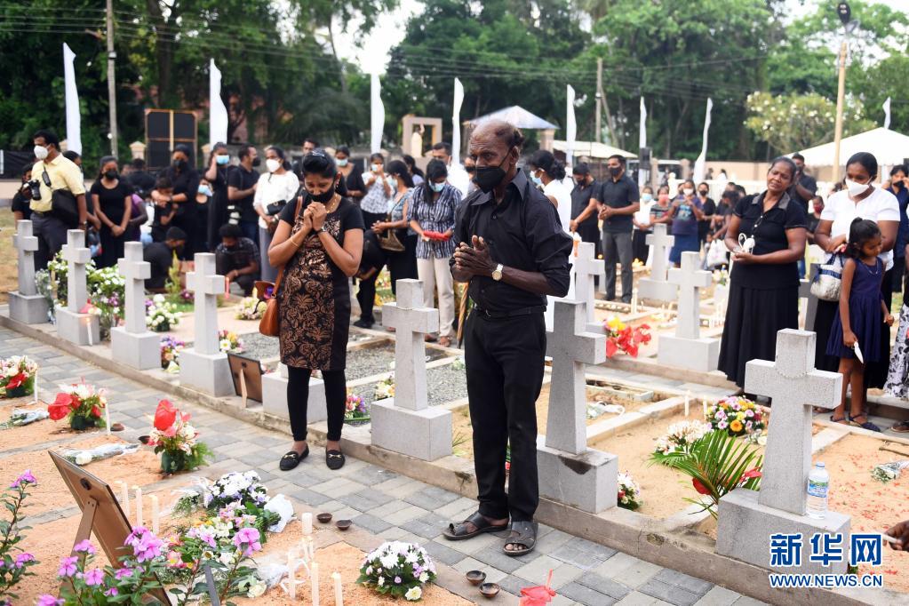 4月21日,在斯里兰卡尼甘布的一处墓地,人们悼念连环恐怖袭击事件中的死难者。