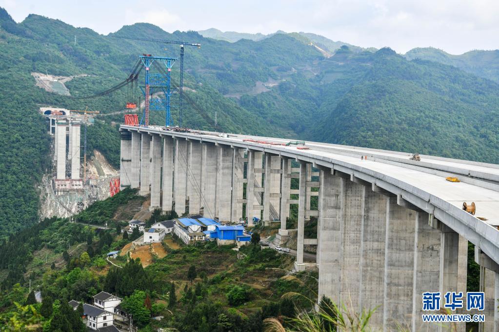 这是4月21日拍摄的贵州省仁遵高速公路大发渠特大桥施工现场。