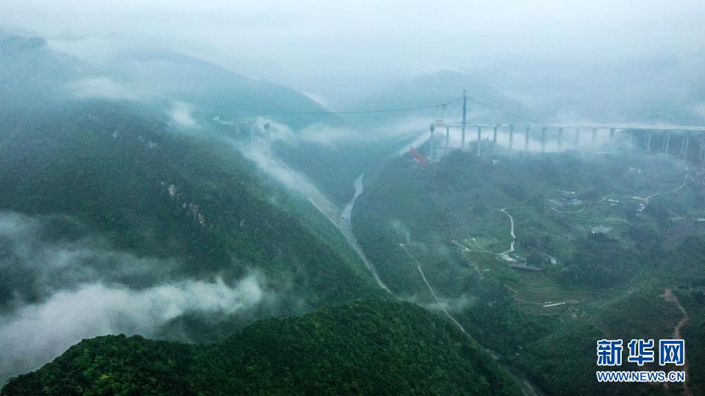 这是4月22日拍摄的贵州省仁遵高速公路大发渠特大桥(无人机照片)。