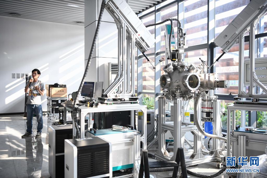 这是东莞松山湖材料实验室陈列的超导薄膜生产设备(4月21日摄)。