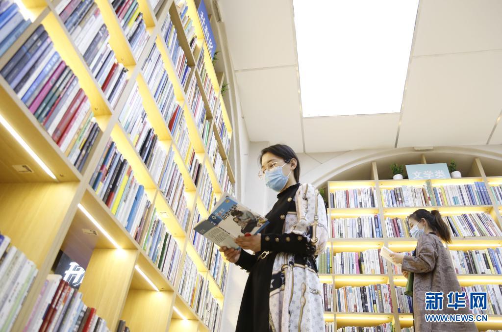 4月21日,市民在河北省邢台市襄都区一家夜间开放的城市书房阅读书籍。