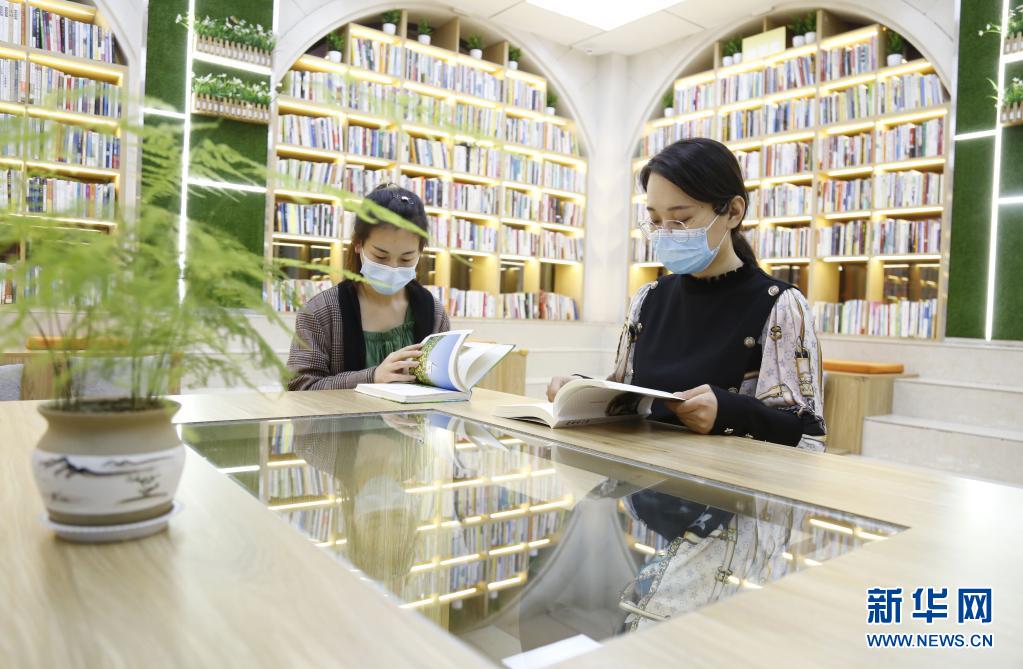 4月21日,市民在河北省邢台市襄都区一家夜间开放的城市书房阅读书籍。