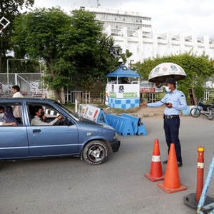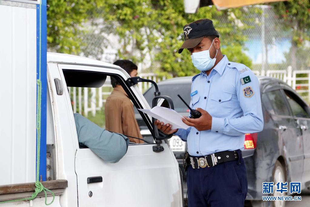 4月22日,警察在巴基斯坦伊斯兰堡一处检查点检查过往车辆。