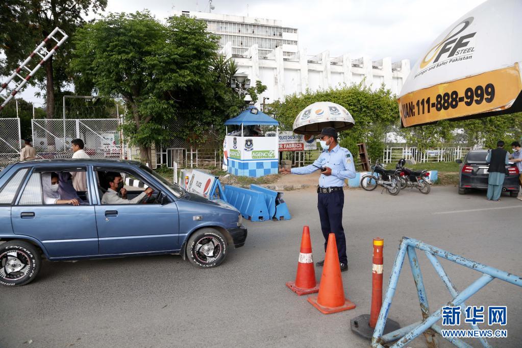 4月22日,警察在巴基斯坦伊斯兰堡一处检查点拦停过往车辆。新华社发(艾哈迈德·卡迈勒摄)