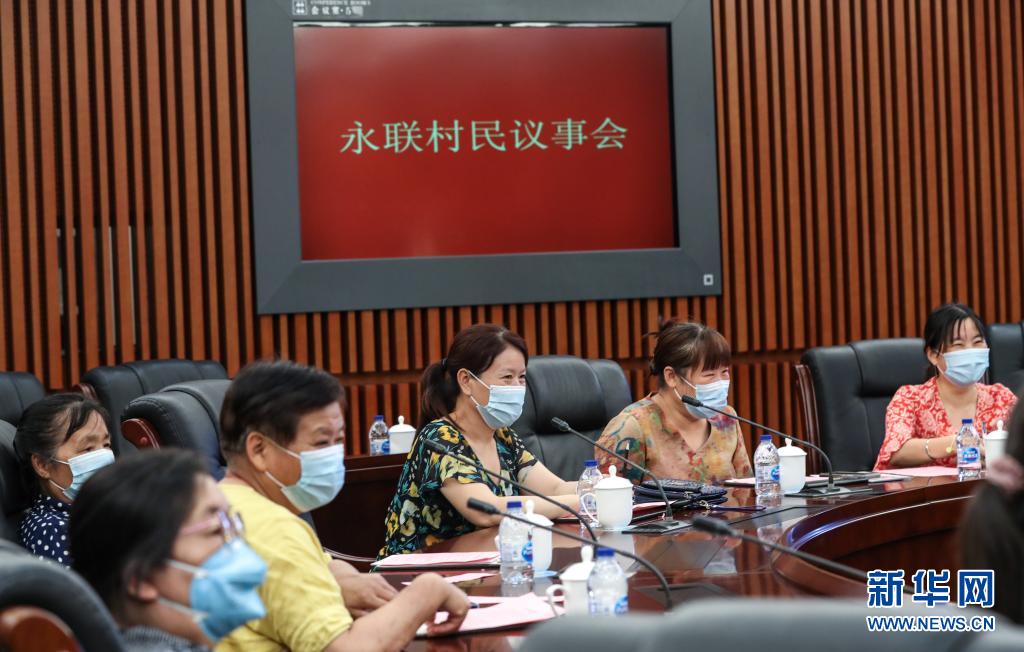 江苏省张家港市永联村永全社区的居民代表在村议事厅民主协议社区环境整治问题(2020年6月19日摄)。