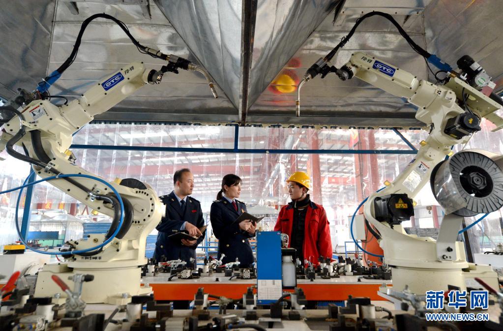 国家税务总局邯郸市肥乡区税务局工作人员在一家生产企业调研税费政策落实情况(2020年10月29日摄)。国家税务总局邯郸市肥乡区税务局实施“一企一策”个性化精准辅导,主动上门宣传和解读减税降费政策,确保税费优惠相关政策落实“一户不少、应享尽享”,为企业发展助力。