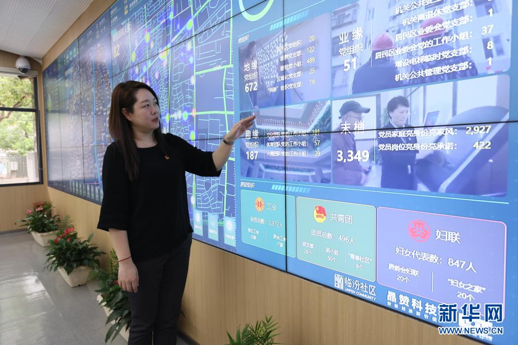 在上海市静安区临汾路街道办事处,工作人员介绍党建网格的应用场景(2020年9月21日摄)。