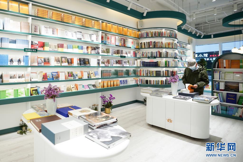 读者在善缘书舍内翻阅图书(4月14日摄)。