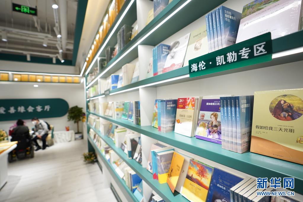 善缘书舍内设置的残疾人作家作品专区(4月14日摄)。