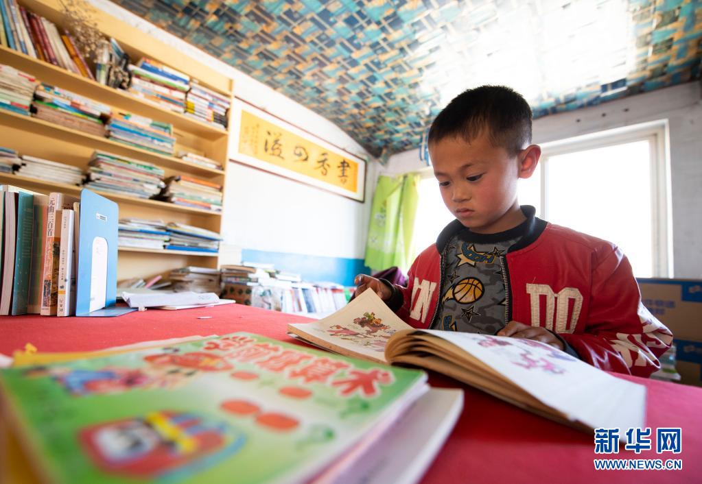 小朋友在灵丘县东窖村大学蜂乡村图书馆内看书(4月18日摄)。