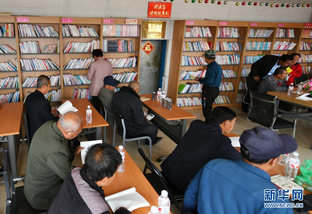 吉林省扶余市肖家乡大沟村村民在农家书屋翻阅图书(4月21日摄)。