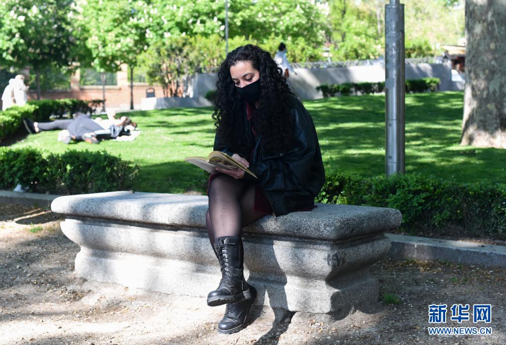 4月17日,一名女子在西班牙马德里一个公园内读书。