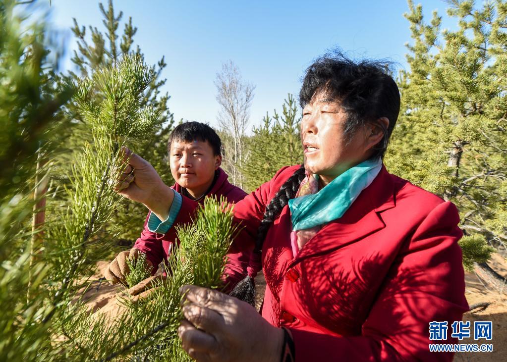 3月23日,殷玉珍(右)给儿子白国才传授造林知识。新华社记者 彭源 摄