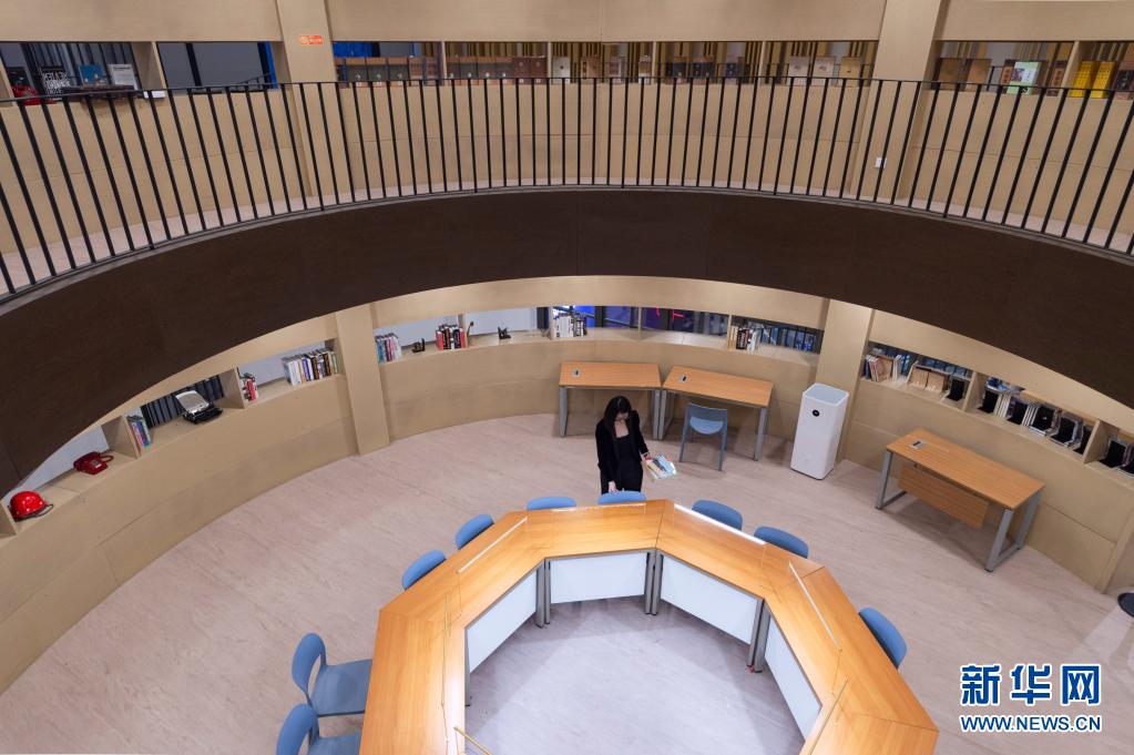 4月22日,在哈尔滨众创书局,于冰在摆放自习室的座椅。