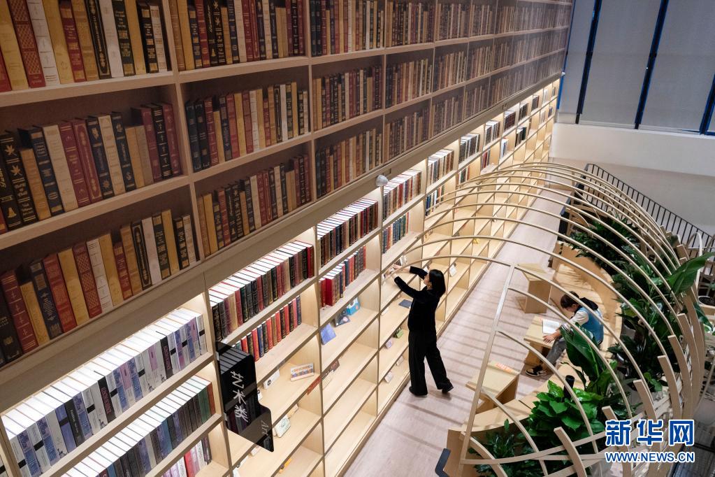 4月22日,于冰在哈尔滨众创书局摆放图书。