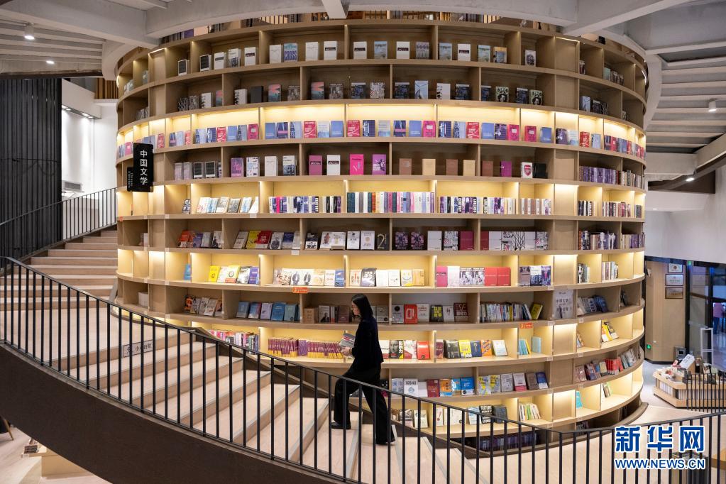 4月22日,在哈尔滨众创书局,于冰在搬运图书。