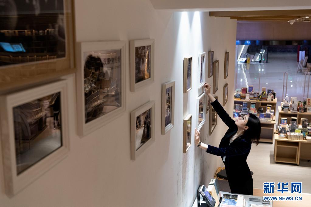 4月22日,在哈尔滨众创书局,于冰在调整装饰品位置。
