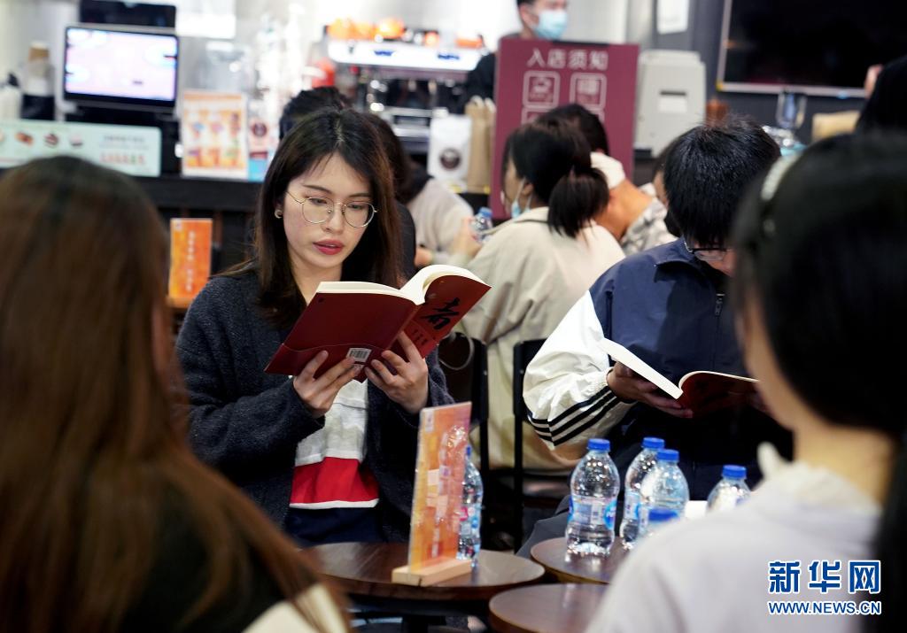 4月22日,青年人在上海徐汇区一家新华书店举行的“青春铭党史,书香砺初心”世界读书日主题活动中阅读书籍。
