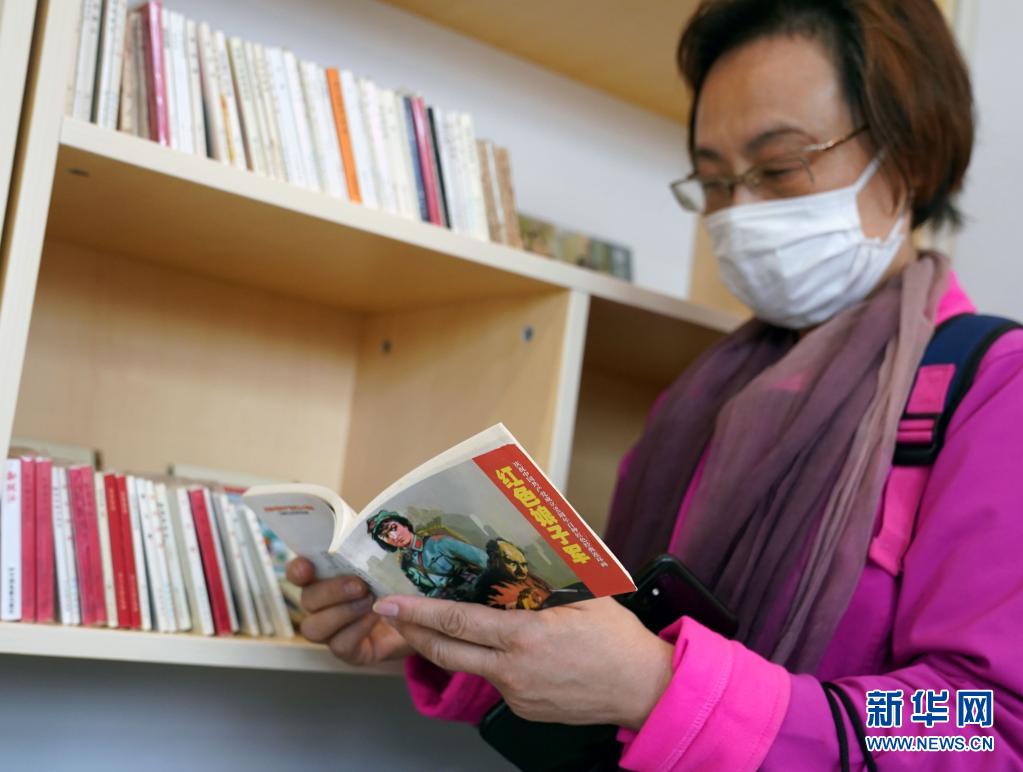 4月23日,在上海市静安区的北站连环画艺术体验中心,读者在翻看连环画《红色娘子军》。