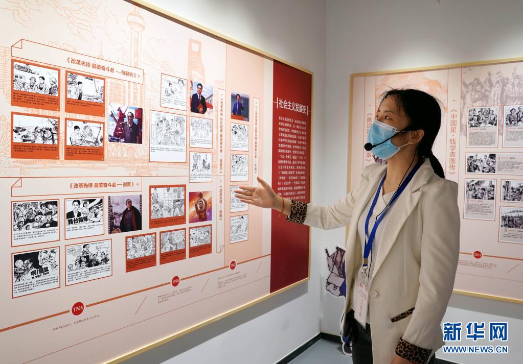 4月23日,“我要读书·世界读书日——庆祝建党百年连环画展”在上海市静安区的北站连环画艺术体验中心开幕。