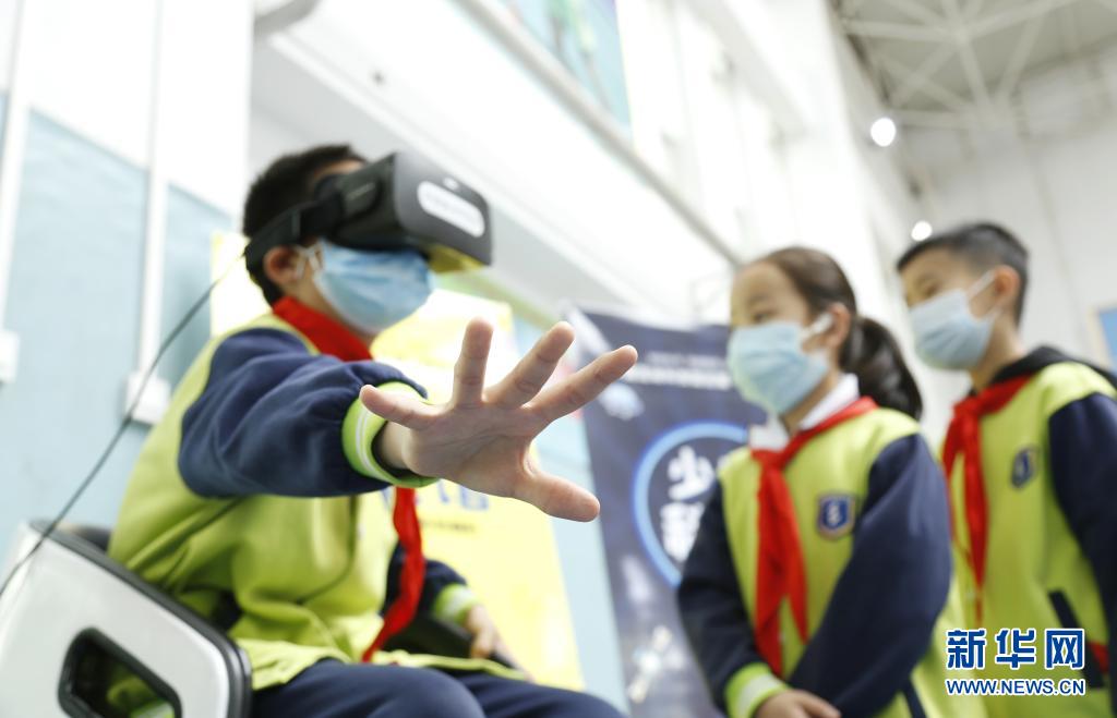 4月23日,学生在邢台市襄都区“流动科技馆”里进行VR体验。