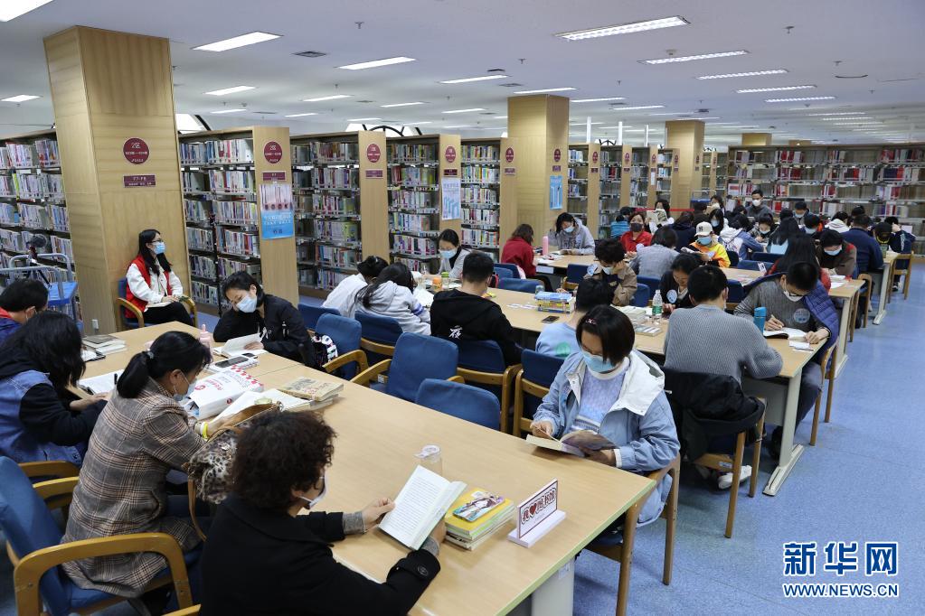 4月23日,在陕西省图书馆,参加“读书慢直播”活动的读者在阅读书籍。