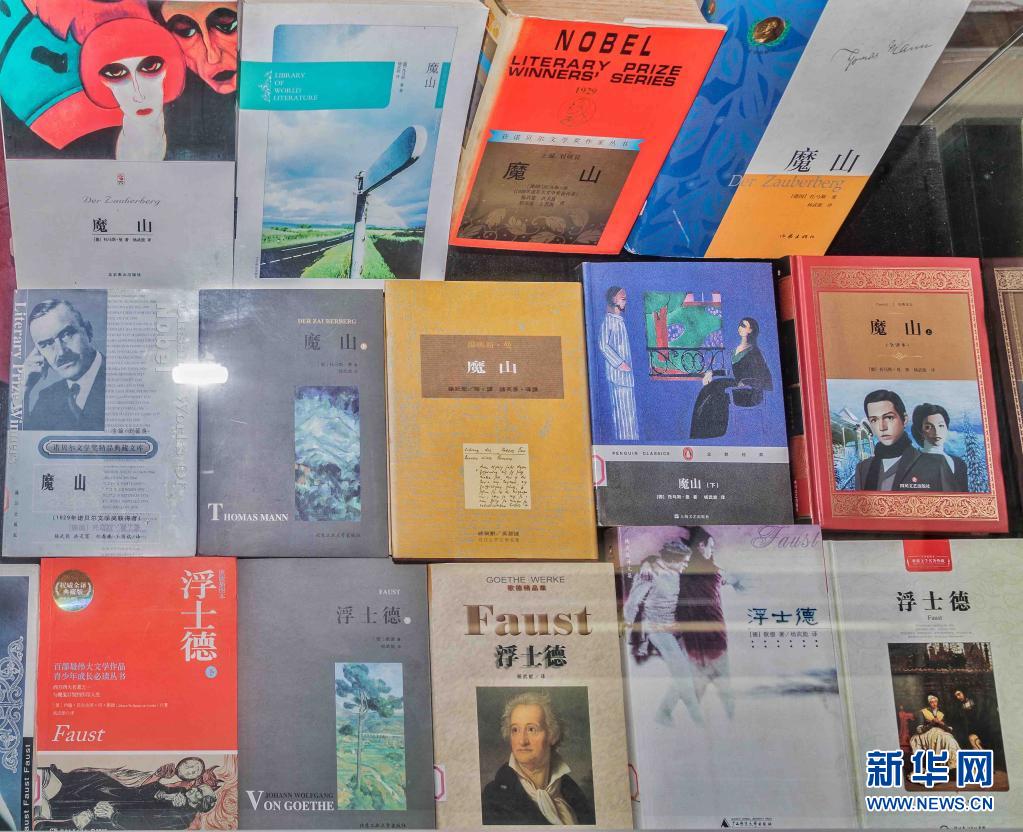 这是杨武能翻译出版的《浮士德》和《魔山》(4月22日摄)。新华社记者 刘坤 摄
