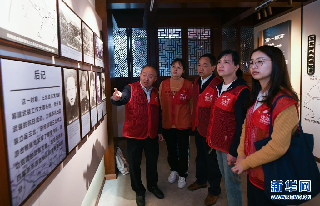 4月23日,慈溪市钱海军志愿服务中心党支部的党员在浙东抗日根据地旧址参观学习。
