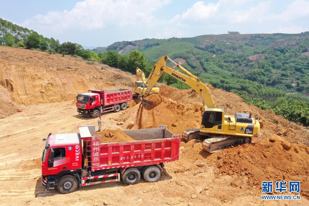 4月23日,在福建漳州市云霄县,国网福建省送变电工程有限公司施工人员在进行土方开挖(无人机照片)。