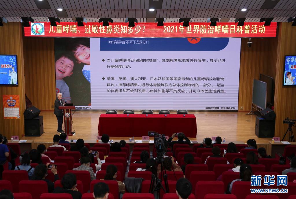4月23日,在科普活动中,首都儿科研究所附属儿童医院变态反应科知名专家陈育智主任医师在介绍儿童哮喘的诊断与治疗。