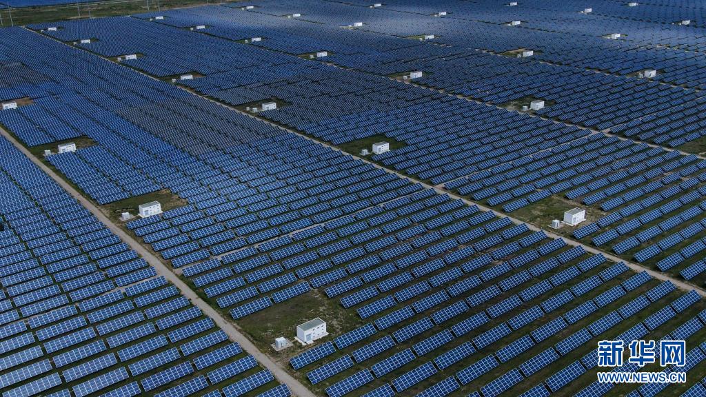青海省海南藏族自治州共和县塔拉滩光伏电站(2020年8月17日摄,无人机照片)。新华社记者 张龙 摄
