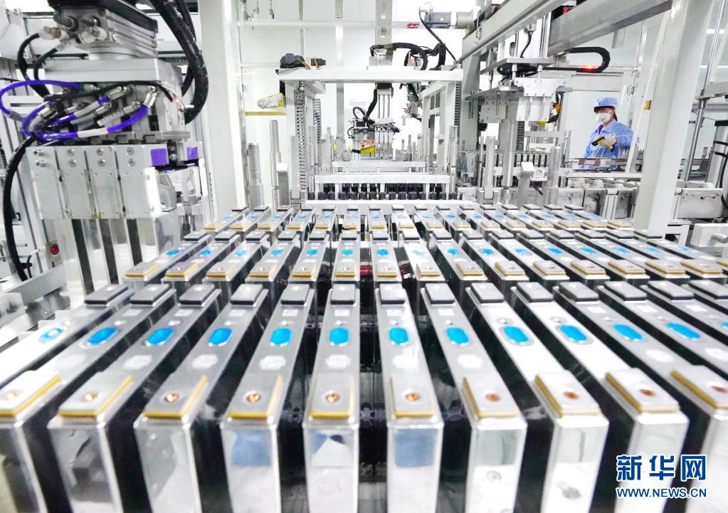 河北省唐山市路北区一家锂电池企业的工人在生产线上工作(2020年11月29日摄)。新华社记者 杨世尧 摄