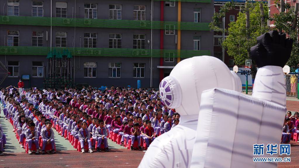 4月23日,全校师生在启动仪式上聆听航天知识。
