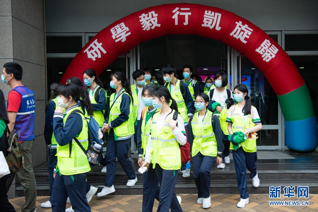 3月27日,澳门教业中学学生从校门口起步。新华社记者 张金加 摄